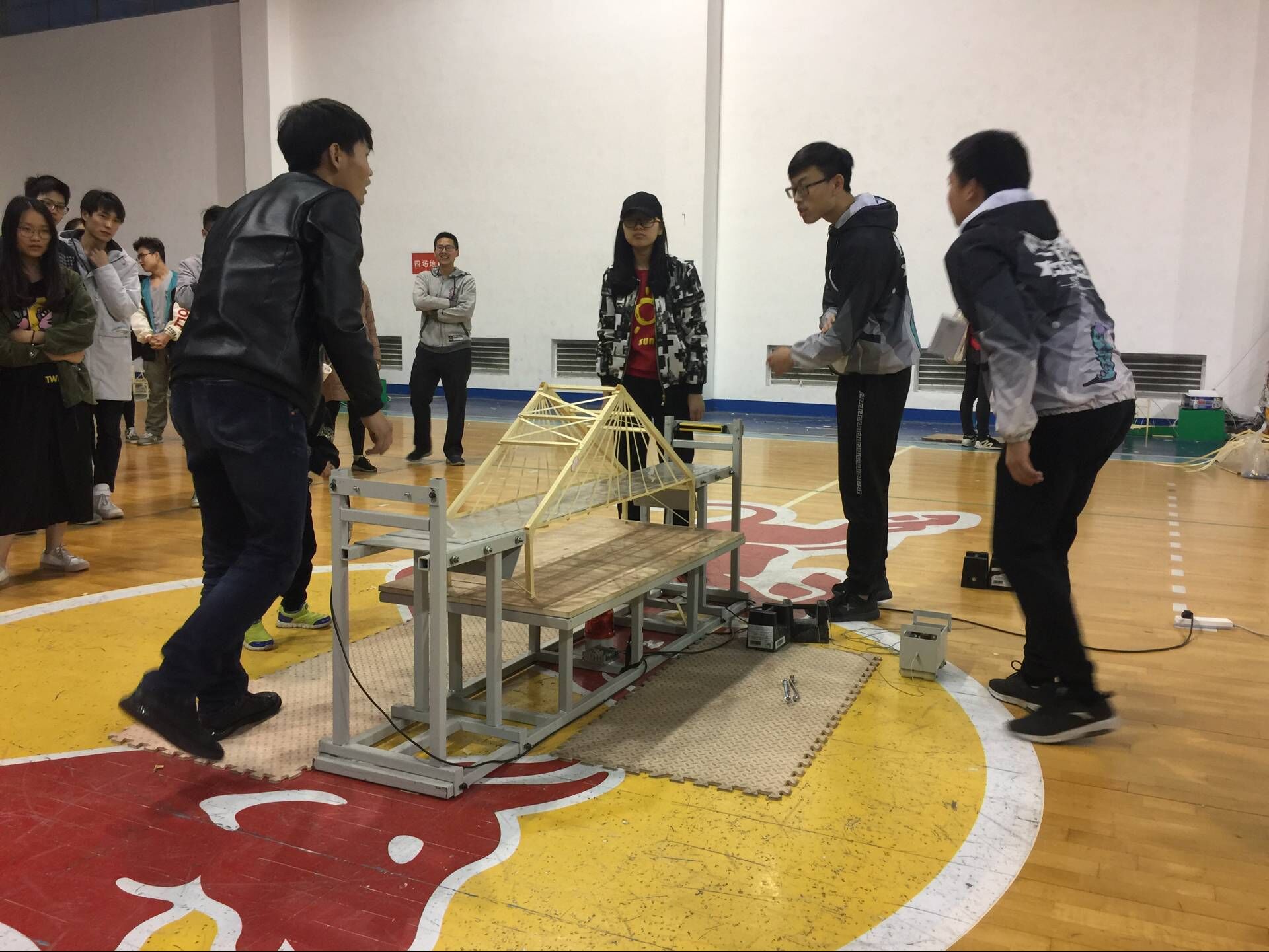 澳门永利6774第六届大学生结构设计竞赛暨湖南省第二届大学生结构设计竞赛选拔赛于 2018年4月14日在澳门永利6774第二体育馆成功举办。本次选拔赛共有110组共330名学生报名参加,经过学生现场演示答辩、专家当场评审后,评出一等奖9项,二等奖14项,三等奖20项,创意美观奖2项。本届竞赛有5个院系共计10余个与力学相关的专业的学生参加,成为永利官网大学生结构设计竞赛在全校范围内推广的里程碑。