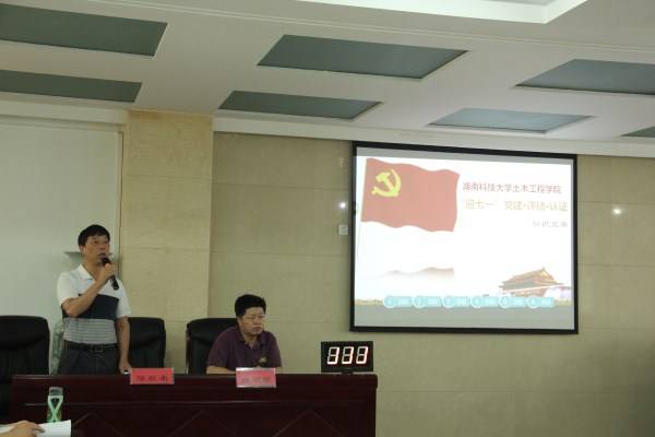 6月27日下午2:30,永利官网于土木楼201顺利举行迎七一“党建·评估·认证”知识竞赛。全体院领导和教职工参加本次活动,比赛分为道路与桥梁、行政学工实验、建工、地下、市政建环和工力工管六支代表队。